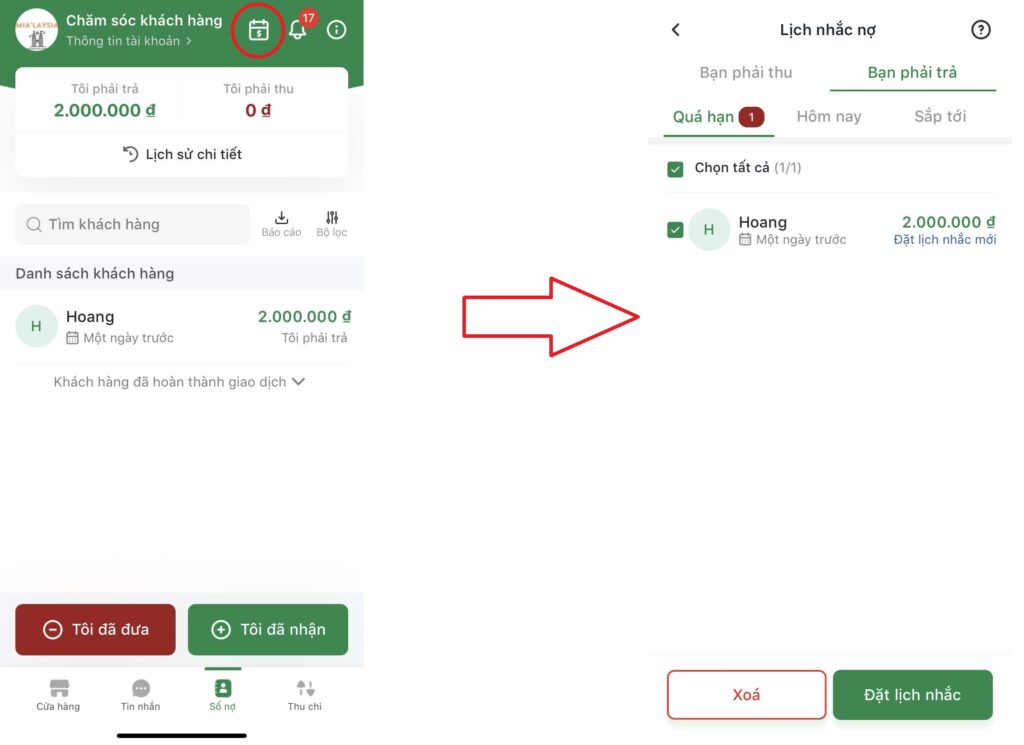 1, Lịch nhắc nợ