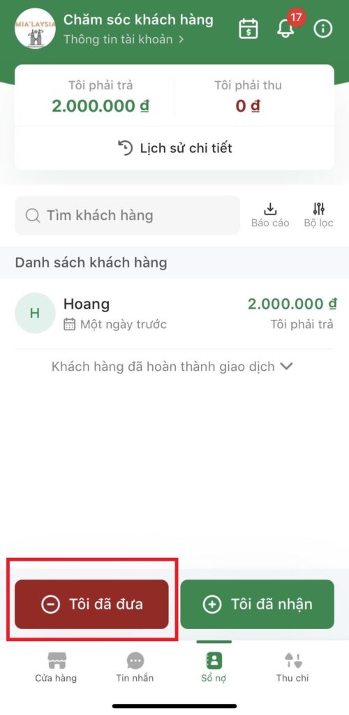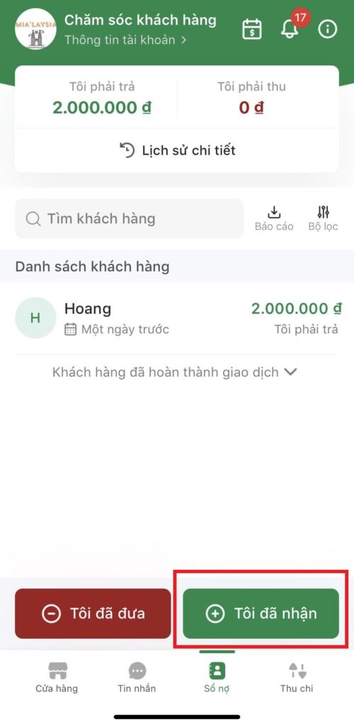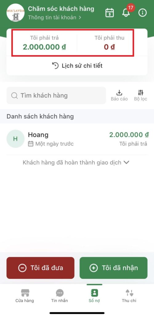 Giới thiệu các tính năng có trong “Sổ nợ”