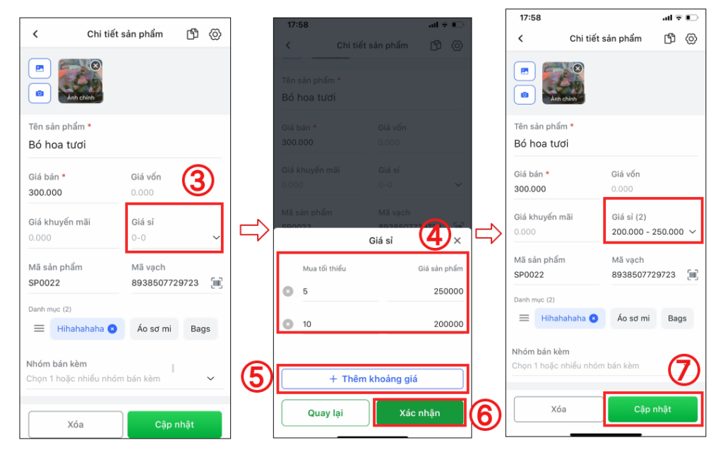 - Thêm khoảng giá (5): Nếu bạn có nhiều mức giá sỉ.