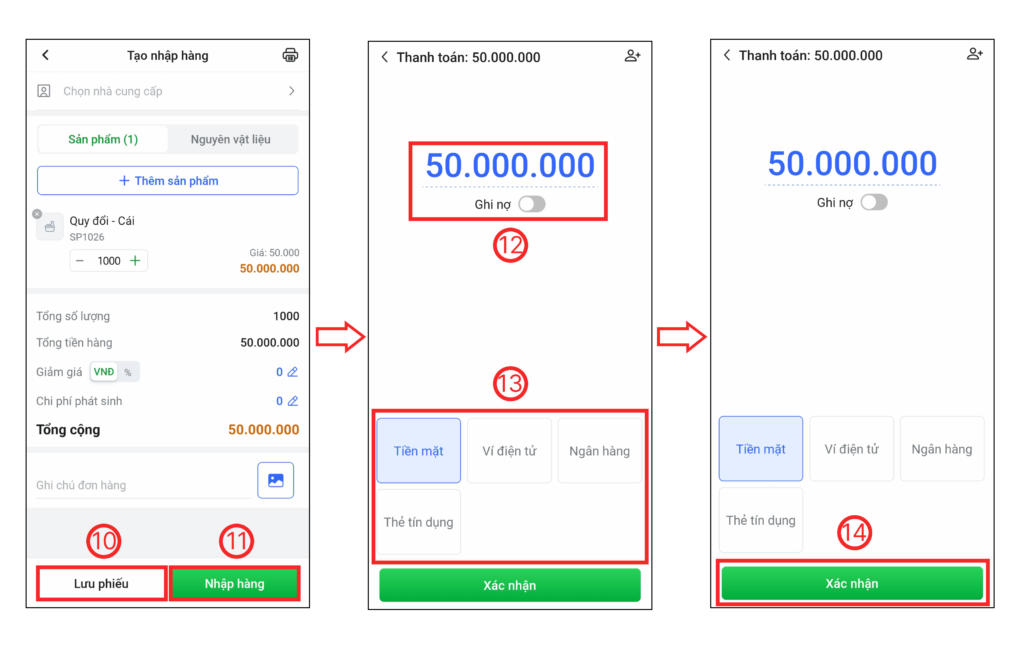- Bấm Xác nhận (14) để xác nhận nhập hàng.