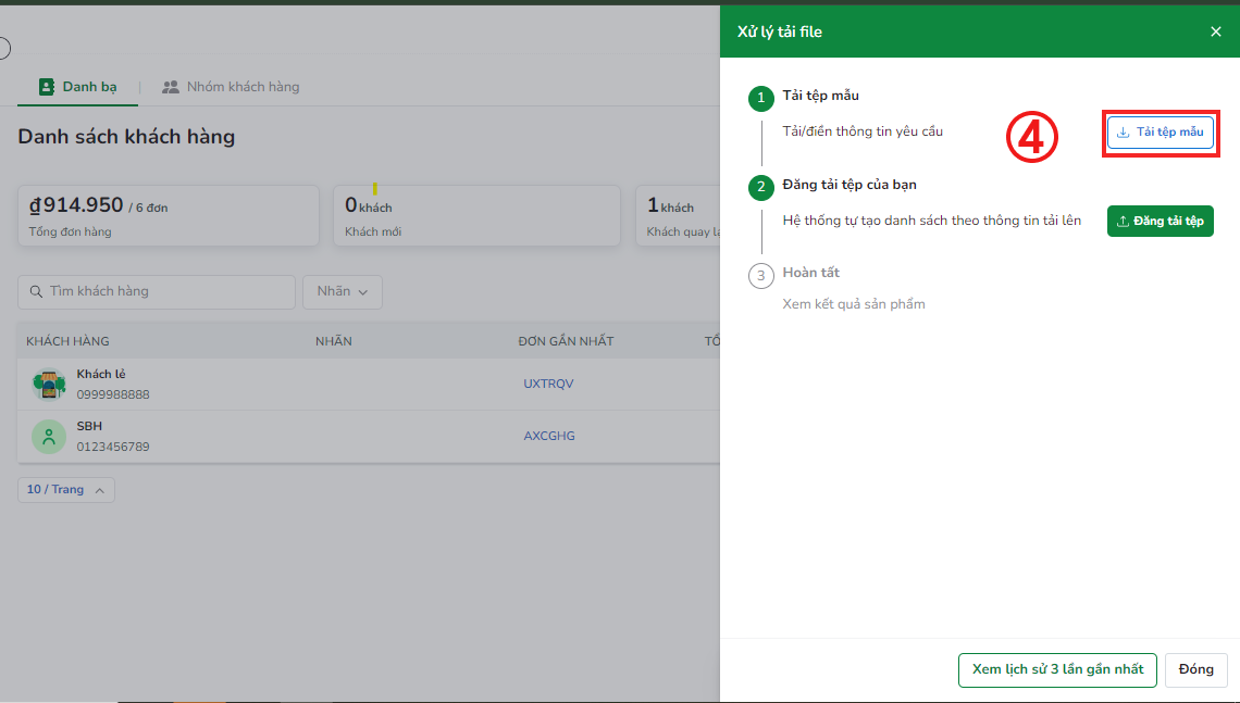Để thêm hàng loạt khách hàng bằng file excel bằng làm theo hướng dẫn dưới đây:
