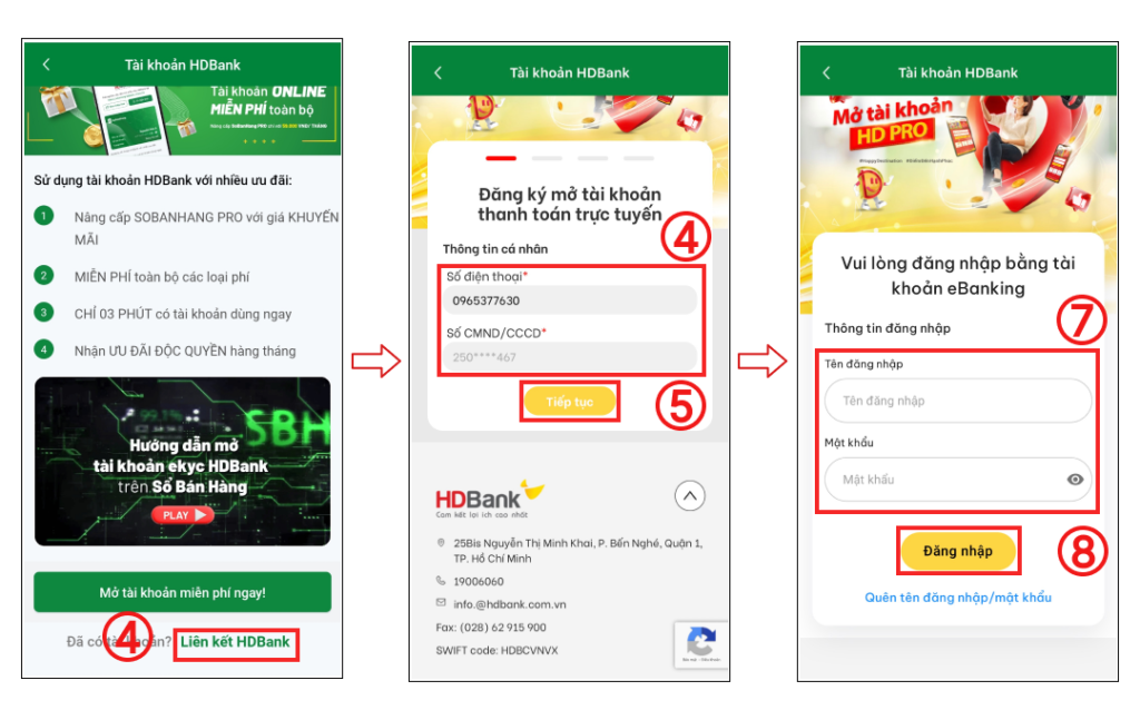 - Số điện thoại đăng ký mở tài khoản HDBank phải trùng với số điện thoại đăng ký tài khoản ứng dụng Sổ Bán Hàng