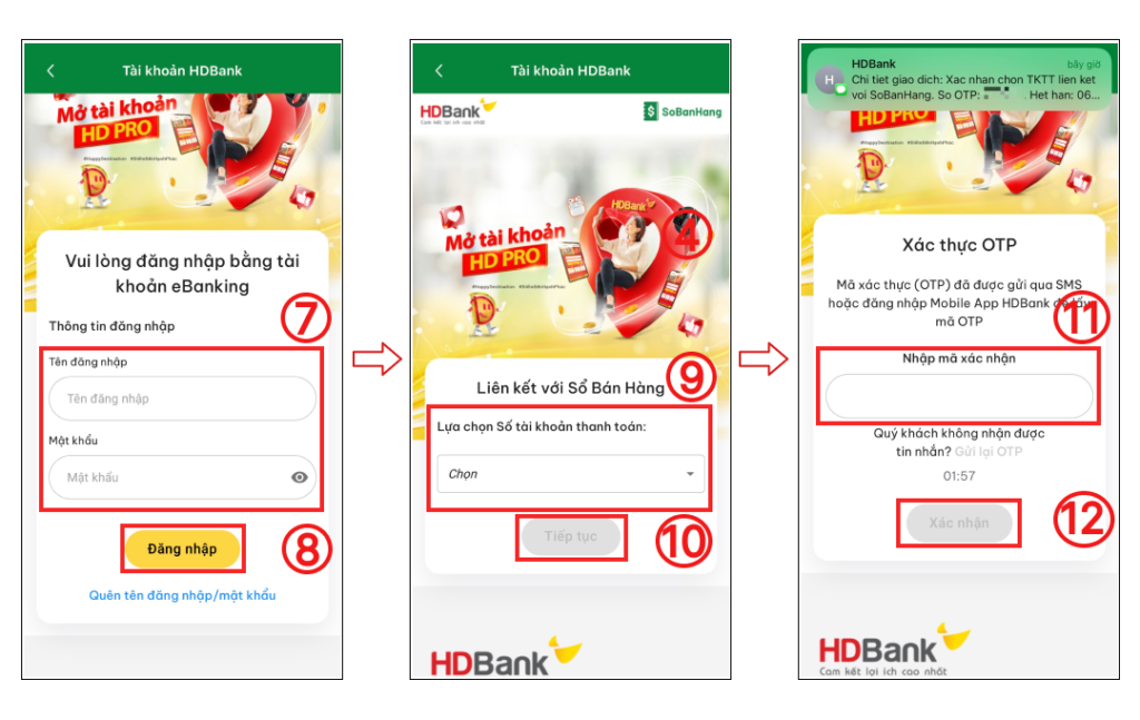 Bước 2: Liên kết tài khoản HDBank với Sổ Bán Hàng