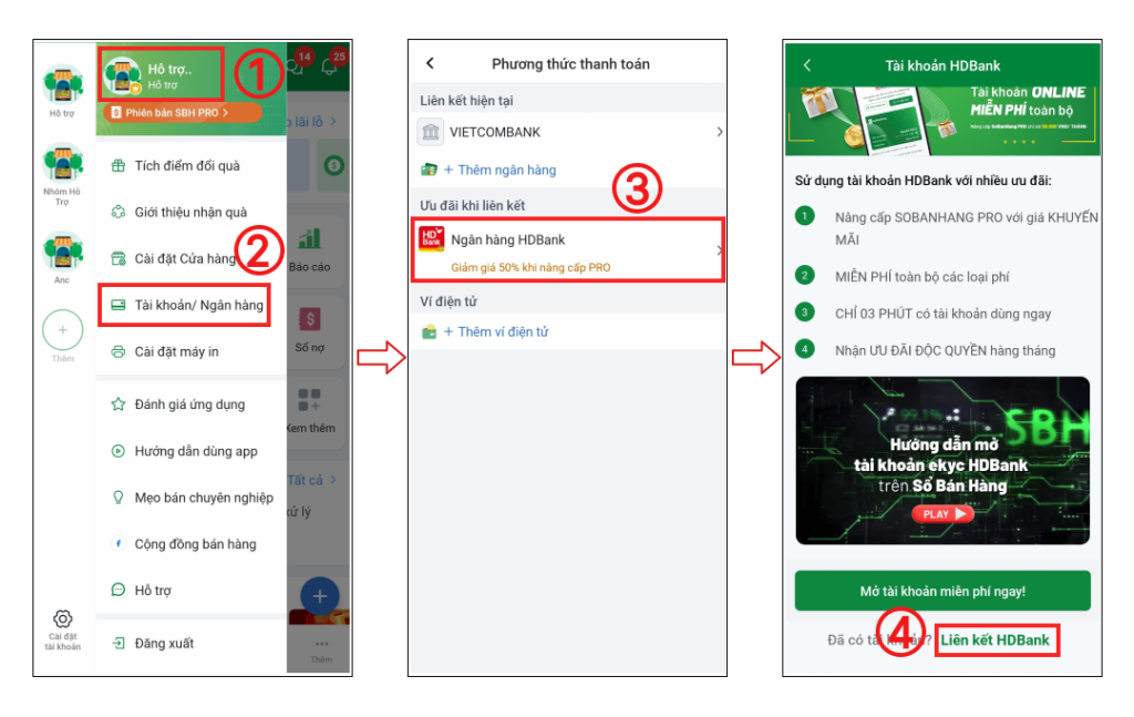 1. Hướng dẫn liên kết tài khoản HDBank với Sổ Bán Hàng