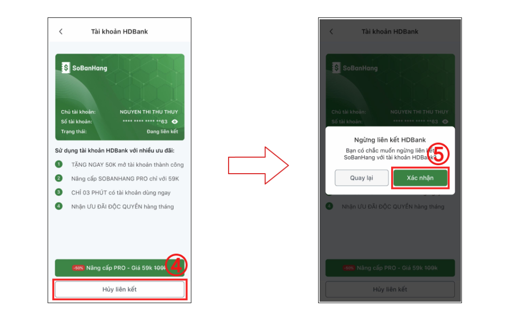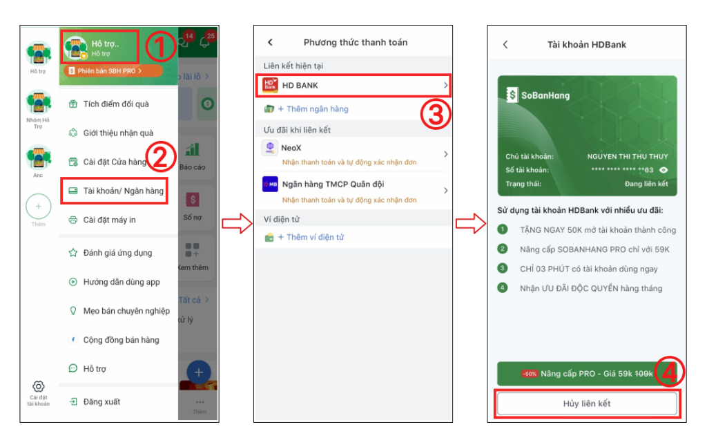 2. Hướng dẫn hủy liên kết tài khoản HDBank với Sổ Bán Hàng