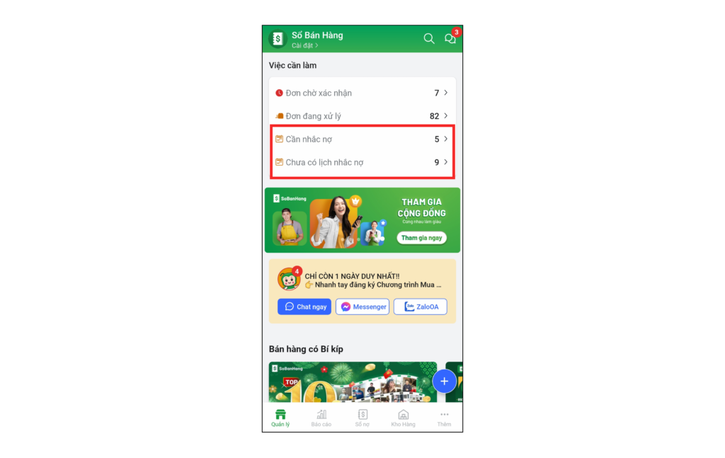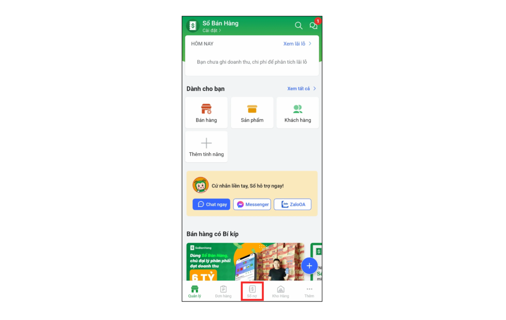 Bước 1: Bạn có thể truy cập tính năng Sổ nợ bằng 1 trong 2 cách sau: