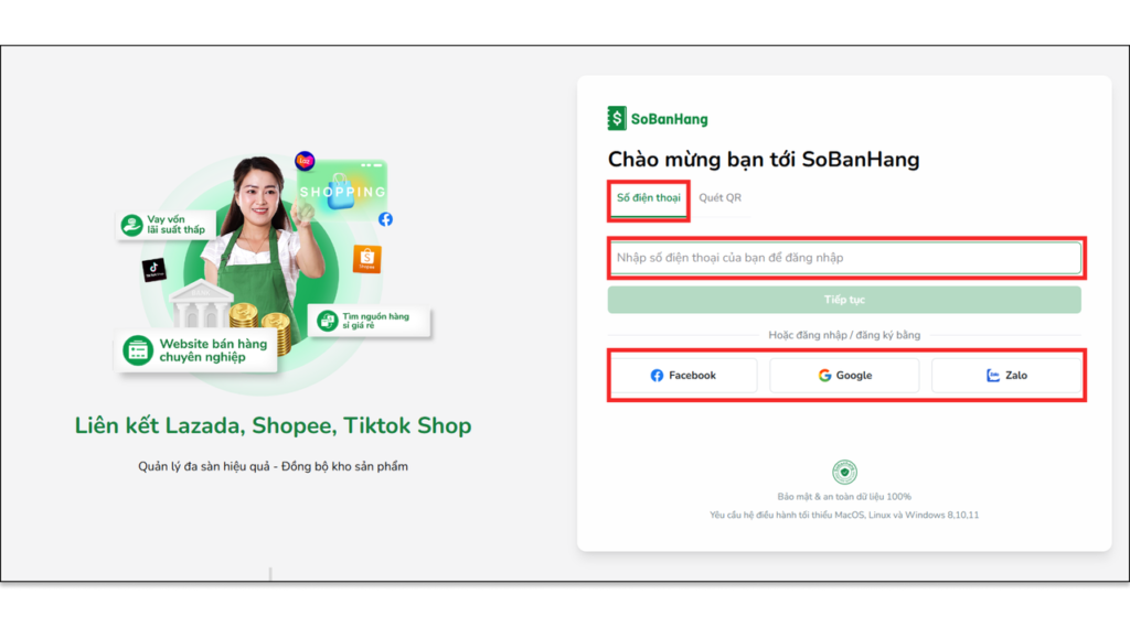 Bước 1: Đăng nhập phần mềm Sổ Bán Hàng trên phiên bản website